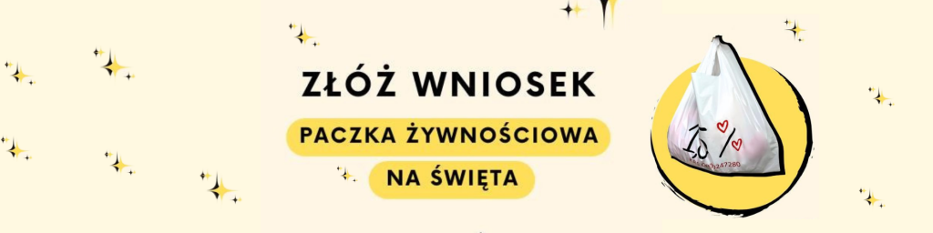 Jeśli Ty lub ktoś z Twoich bliskich potrzebuje wsparcia w postaci paczki żywnościowej, serdecznie zapraszamy do złożenia wniosku!